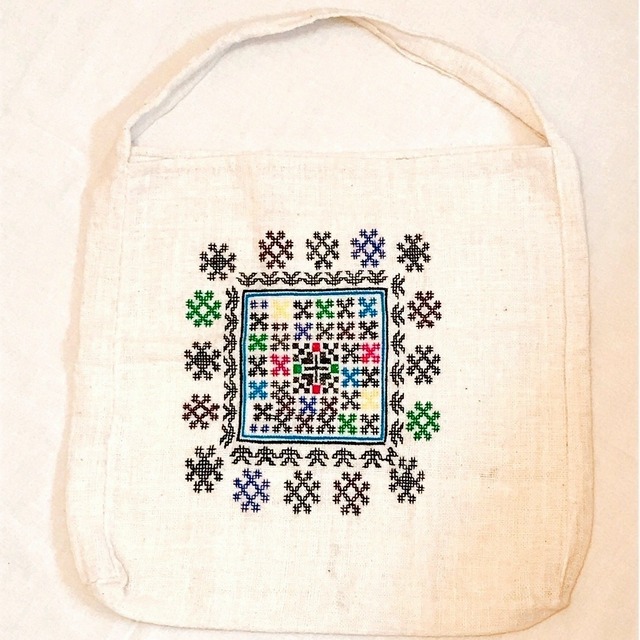 ヤオ族が日常の暮らしの中で使っているショルダータイプのバッグをアレンジし、 Coiオリジナルデザインで制作いたしました。 A4サイズが入る大きさです。 バッグ底から持ち手までの部分が 切り替えがなく1パーツで裁断していますので 重たい荷物を入れても丈夫な作りとなっています。 縁取りを飾っている組み紐もヤオ族の手仕事技術のうちのひとつです。 素材:コットン(タイダム族による手紬・手織りコットン布) サイズ:縦31㎝×横35㎝ マチ5.5㎝ 取っ手の長さ約44㎝ 仕様:裏地無 刺繍:ヤオ族の女性による手刺繍 ※布地の風合い、刺繍の雰囲気、サイズは1点づつ異なりますので予めご了承ください。 **手織り・草木染め・デットストック商品・のお取り扱いについて** ラオスの人たちの暮らしの中で、『手』を使って作られたアイテムです。 1点1点のオリジナルの表情をお楽しみくださいませ。 中には織りムラや傷、色ムラ等がございますので ご理解いただきますようお願いいたします。 お洗濯は蛍光剤、漂白剤を含まない中性洗剤を使用し手洗いで優しく洗ってください。 洗濯後は形を整えてすぐに陰干しをしてください。 移染の恐れがありますので、濡れたままで長時間放置したり、 他の洗濯物と重ねることはお避け下さい。