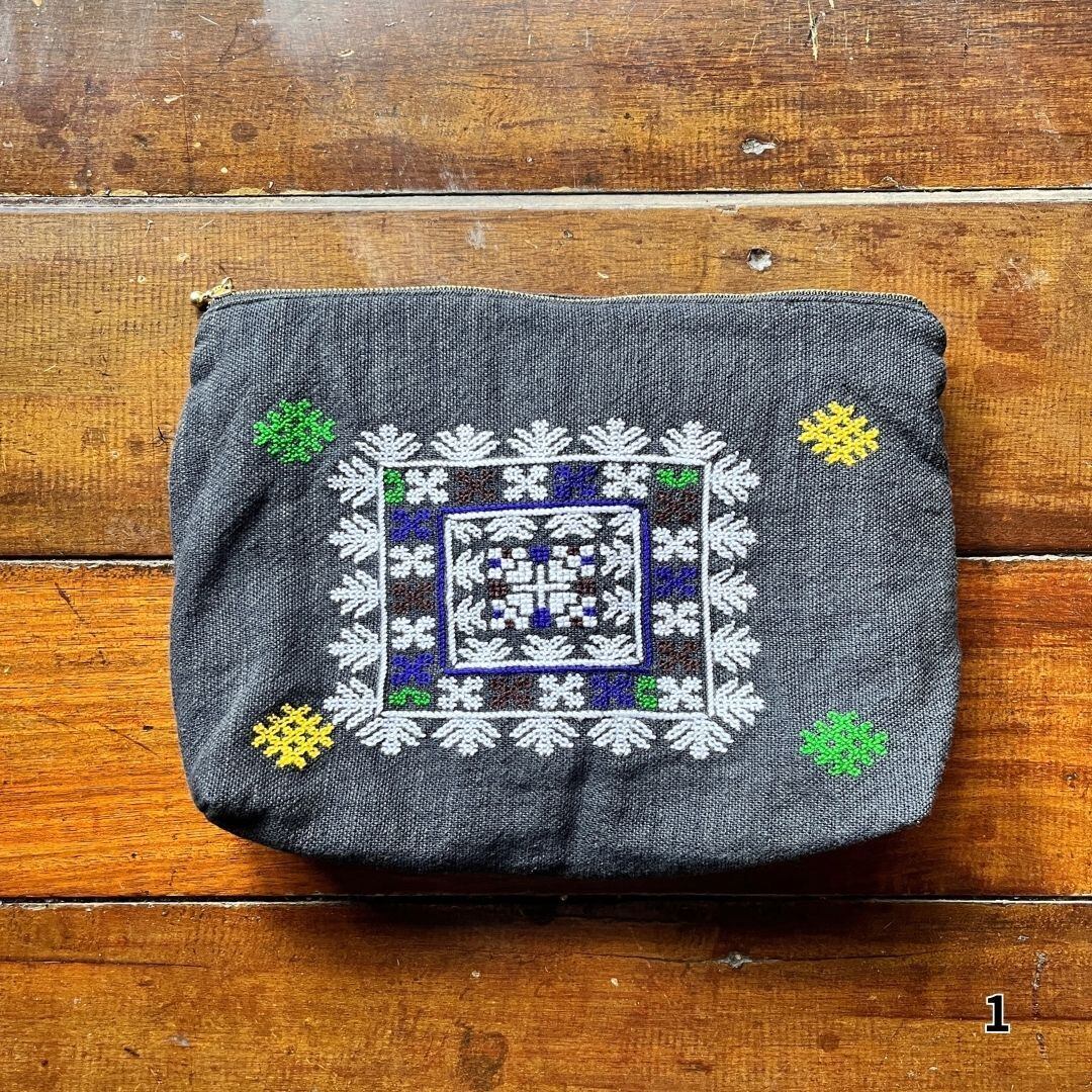 ラオス北部に暮らすヤオ族の伝統衣装に施される刺繍柄のポーチです。
