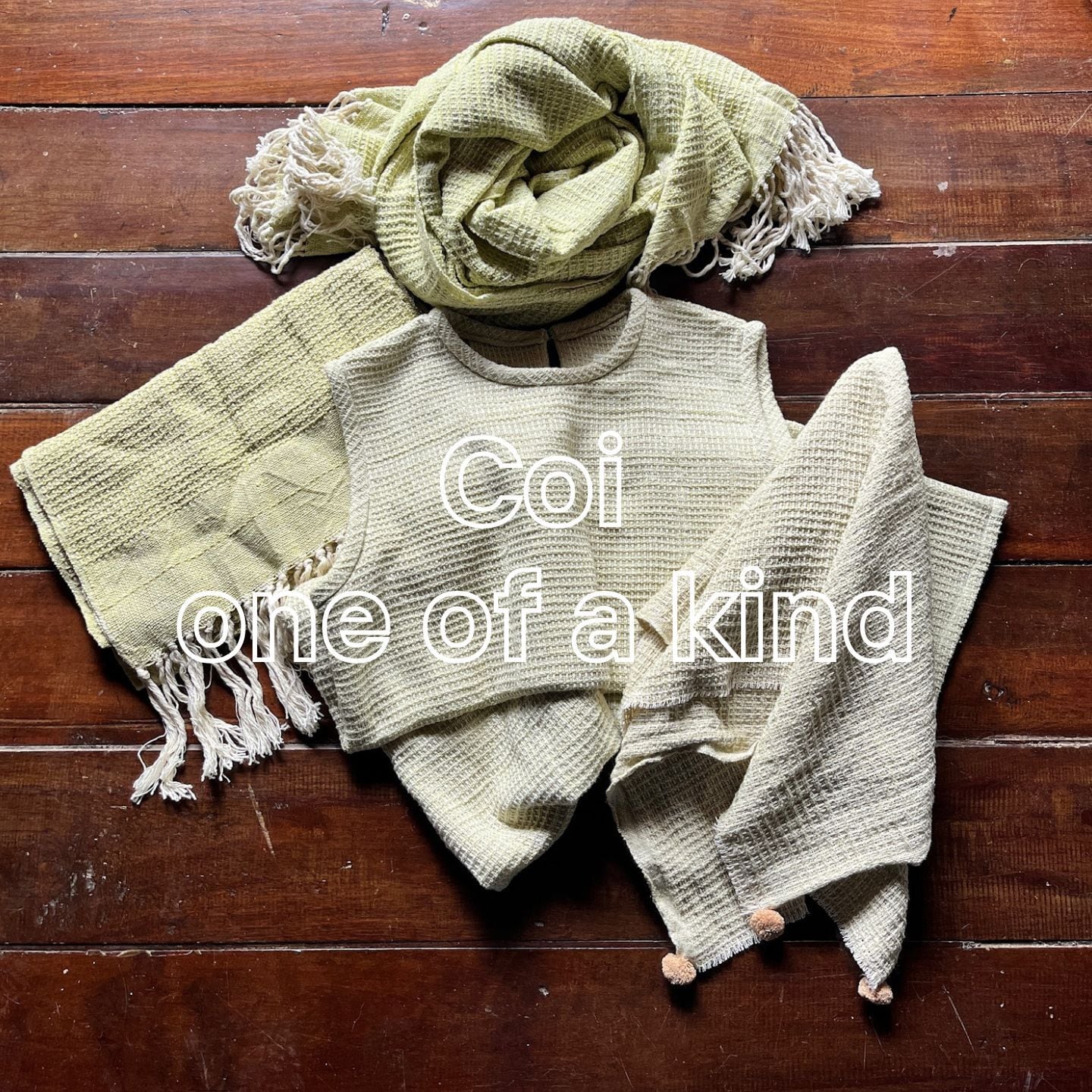 Cotton 100% (手紡ぎ , 手織り, 草木染め)