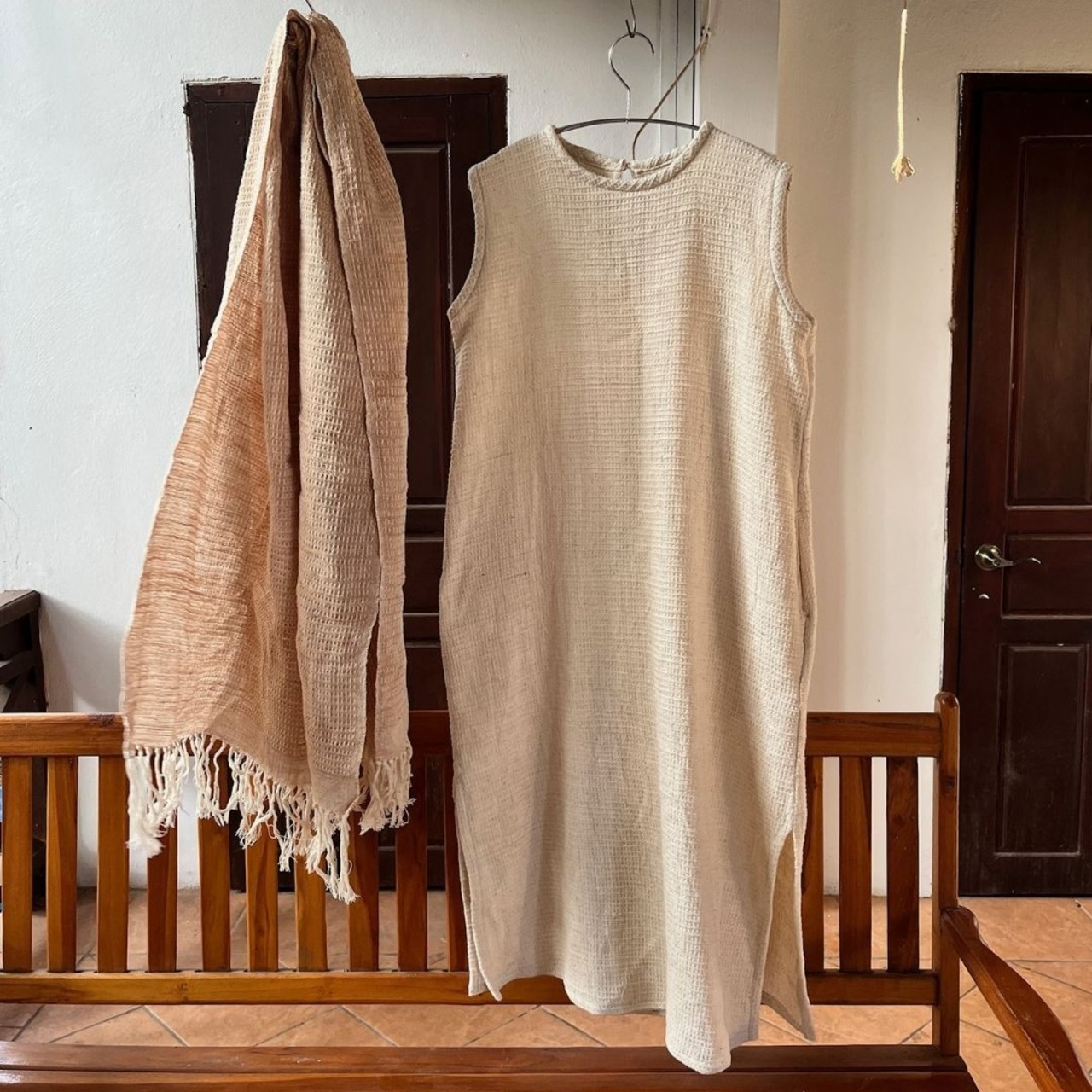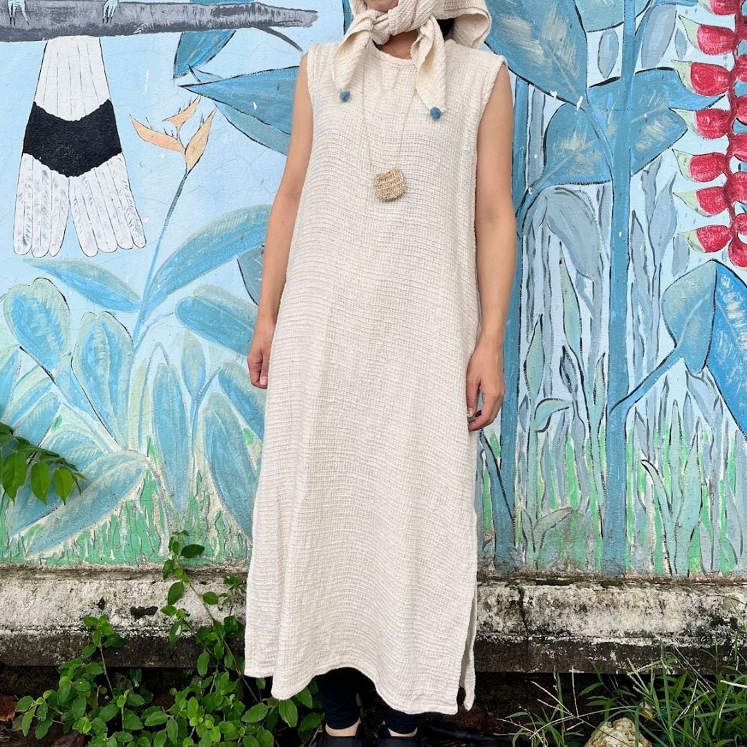 Samkhaoと呼ばれる変形平織りコットン生地のシンプルなワンピースです。