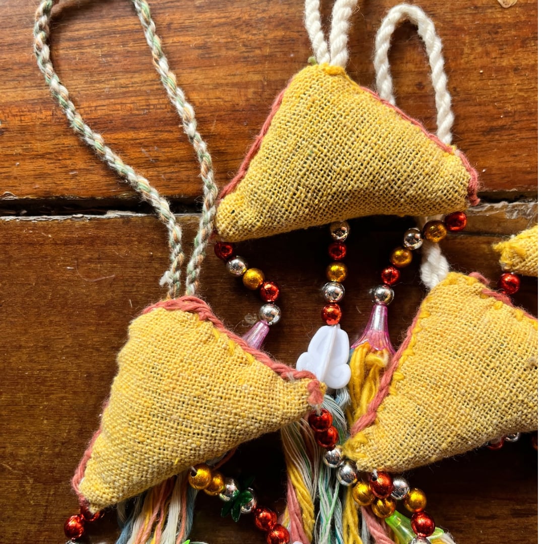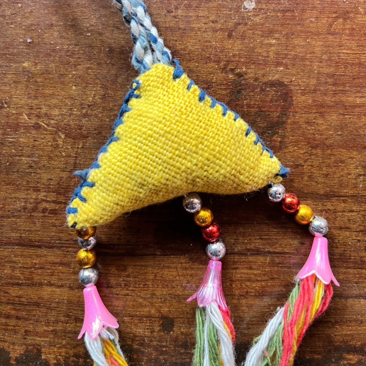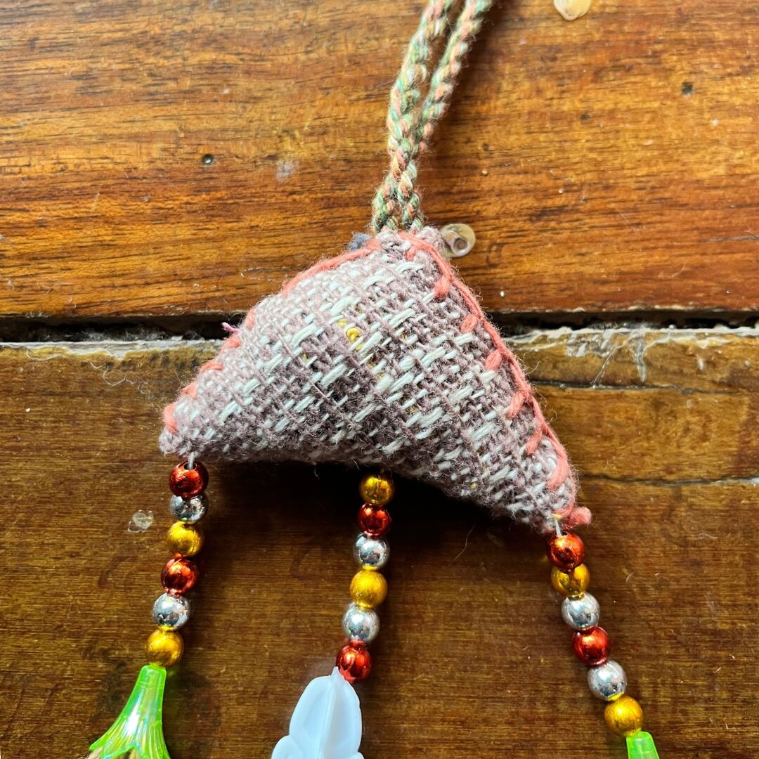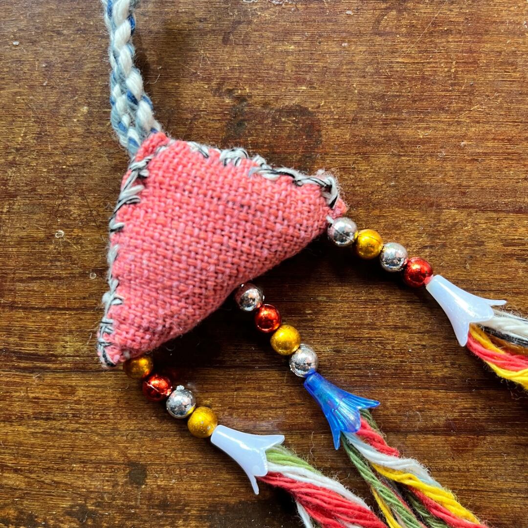 三角の部分とストラップには手紡ぎ手織りコットン布を使用しています。