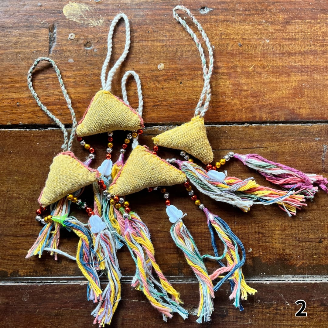 サイズ 三角形部分幅約5cm、高さ約3cm、フリンジの長さ約6cm〜10cm