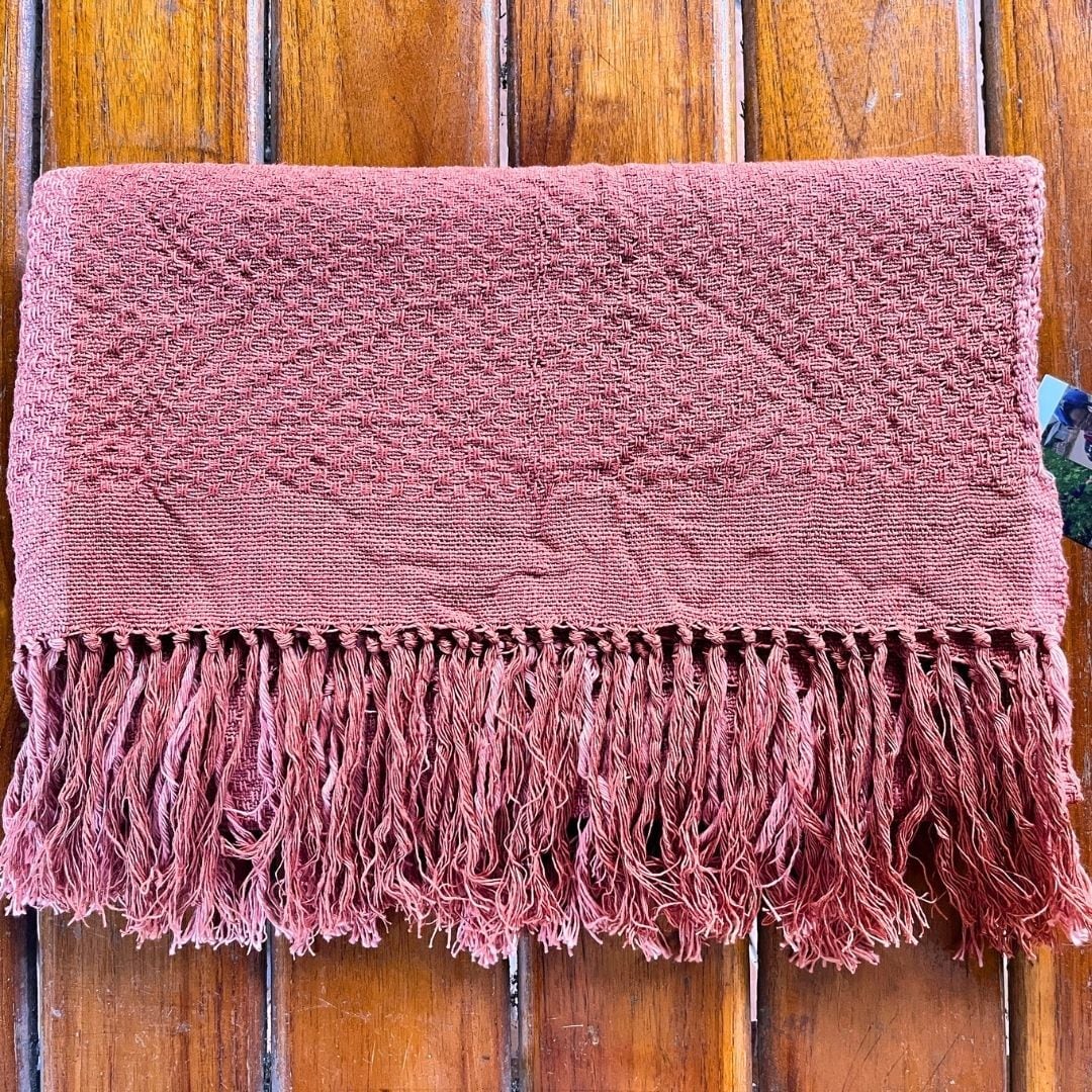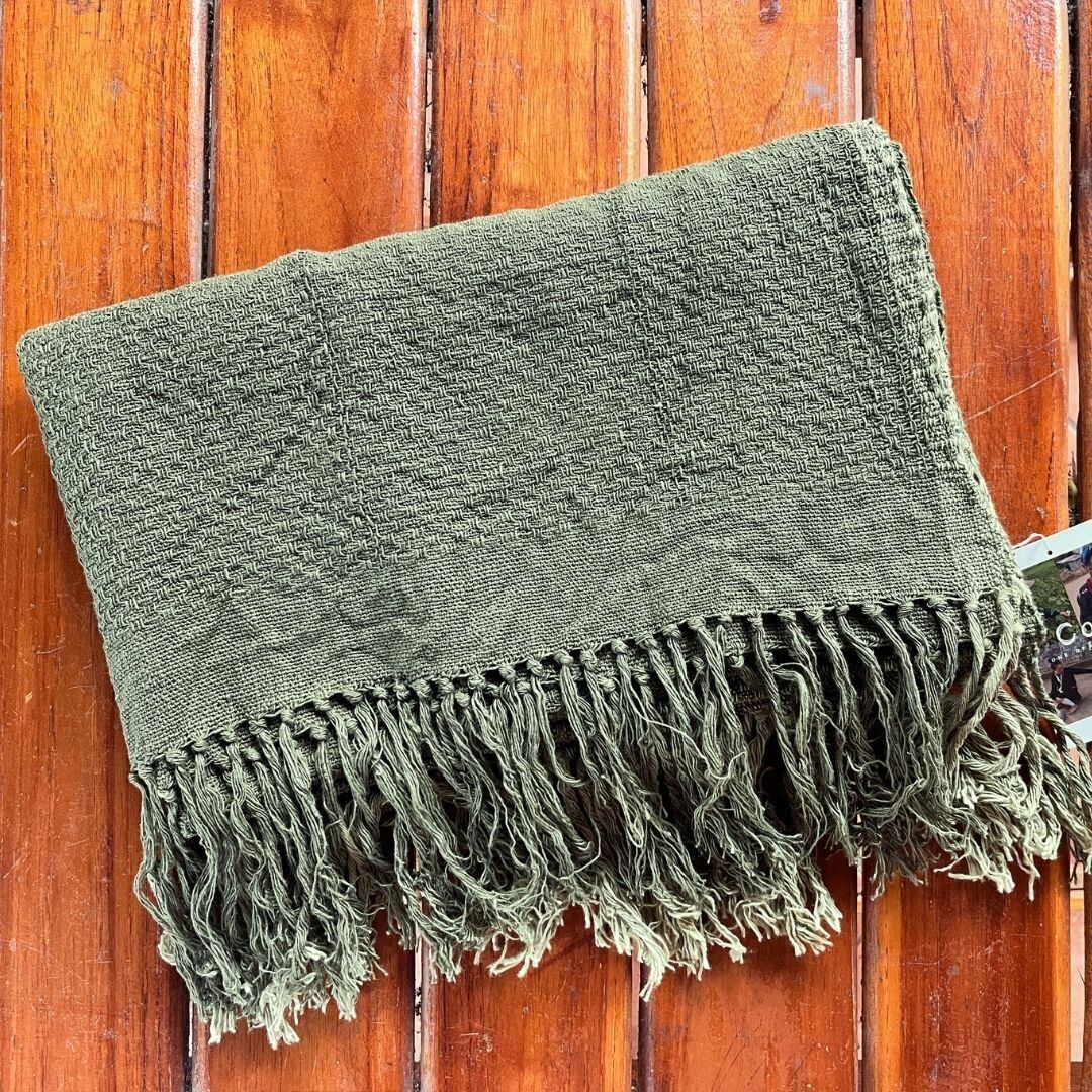 バイカラーワッフル地大判サイズ ラオスの手織りコットン布 TAO cotton fabric 750926 (大判サイズ 約70cm × 180〜195cm前後)