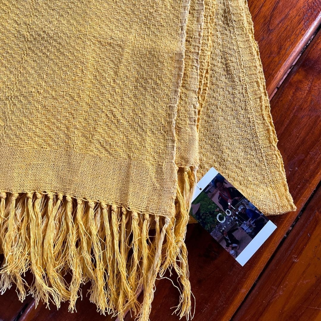 この商品は、ラオスに暮らすタイカーオ族やタイルー族が布を織り、布端のまつり縫いも