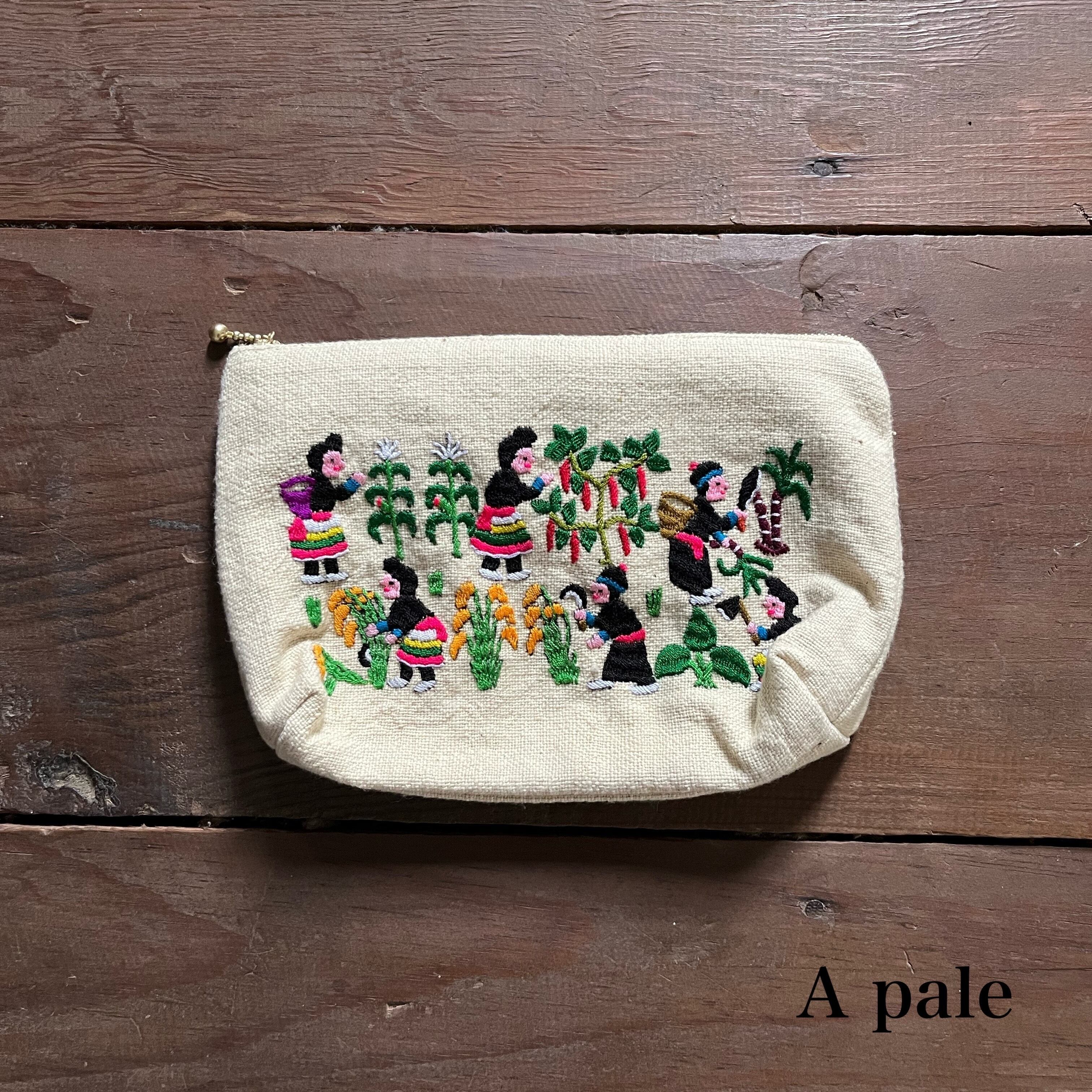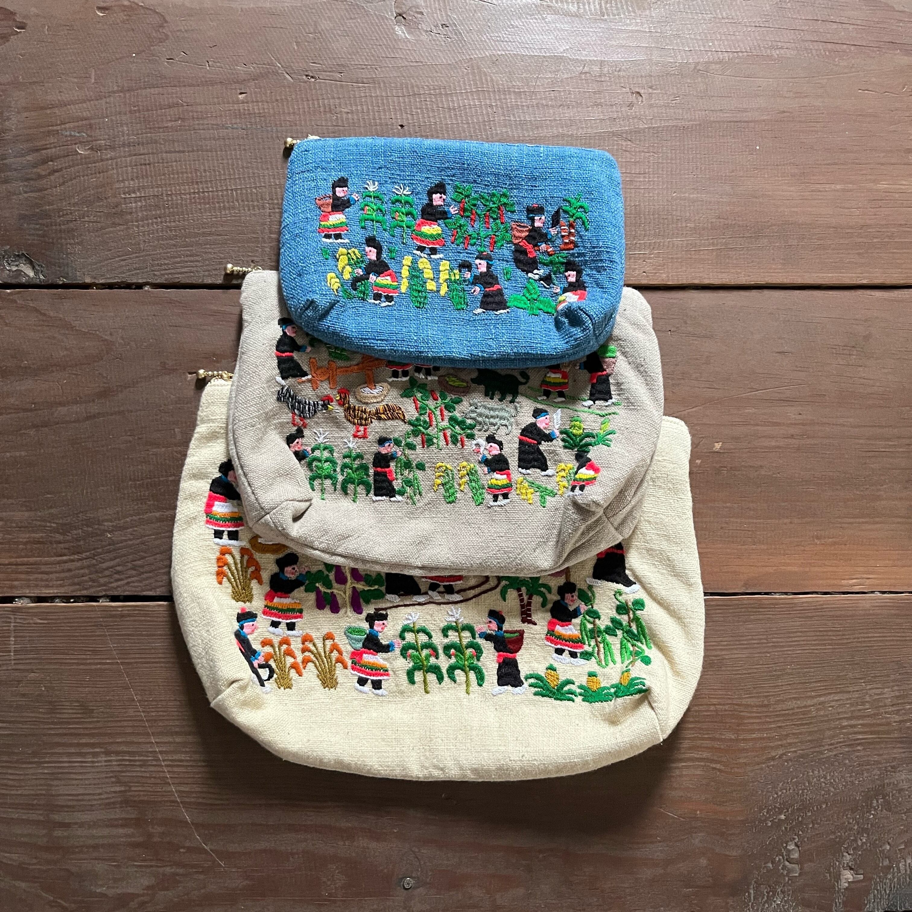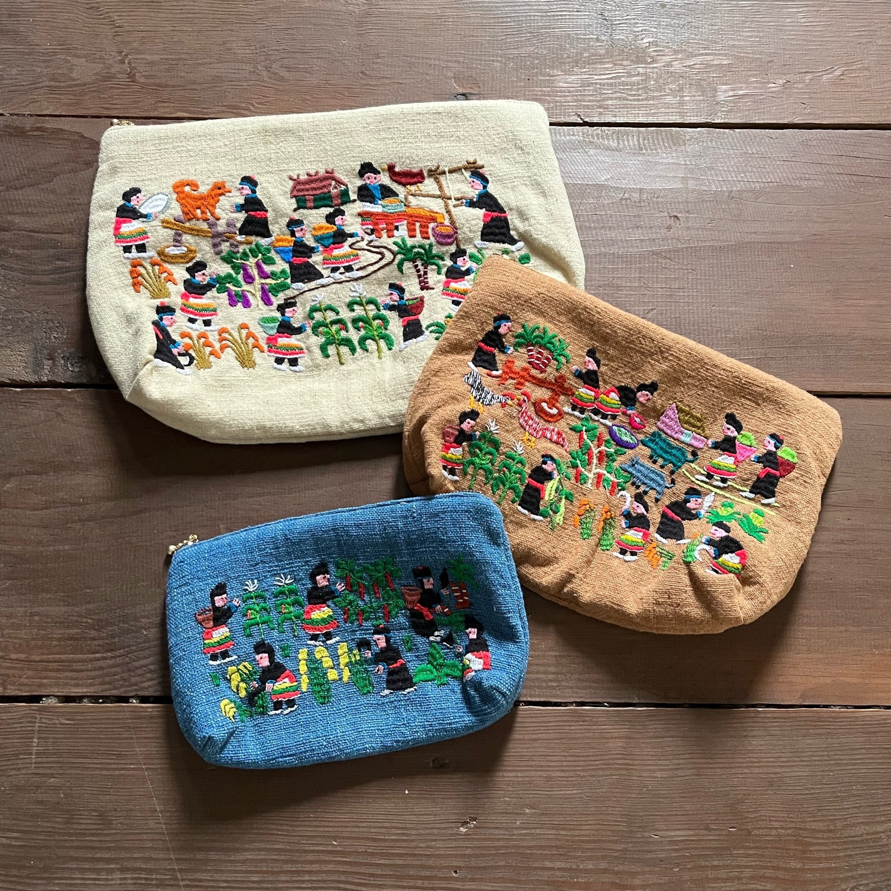 ポーチ small size モン族ライフシーン刺繍 (size 約15cm×25cm)
