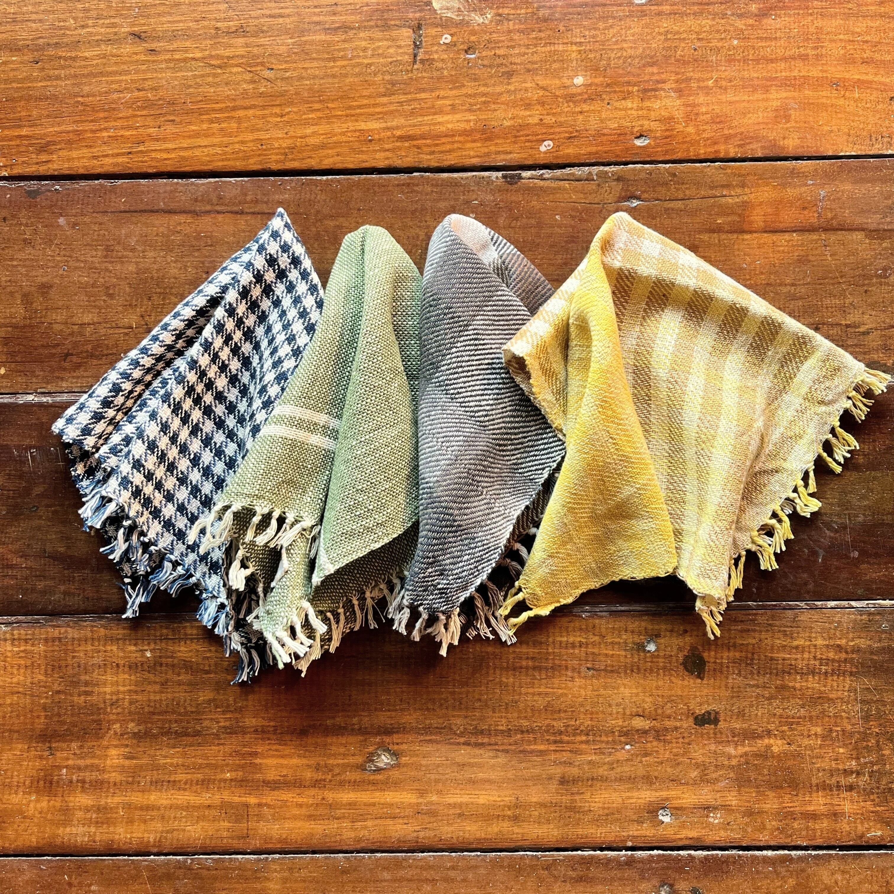 布巾やタオルにいかが? ラオスの手織りコットン布 square series 400623 ( スクエアサイズ 約38cm×39cm)
