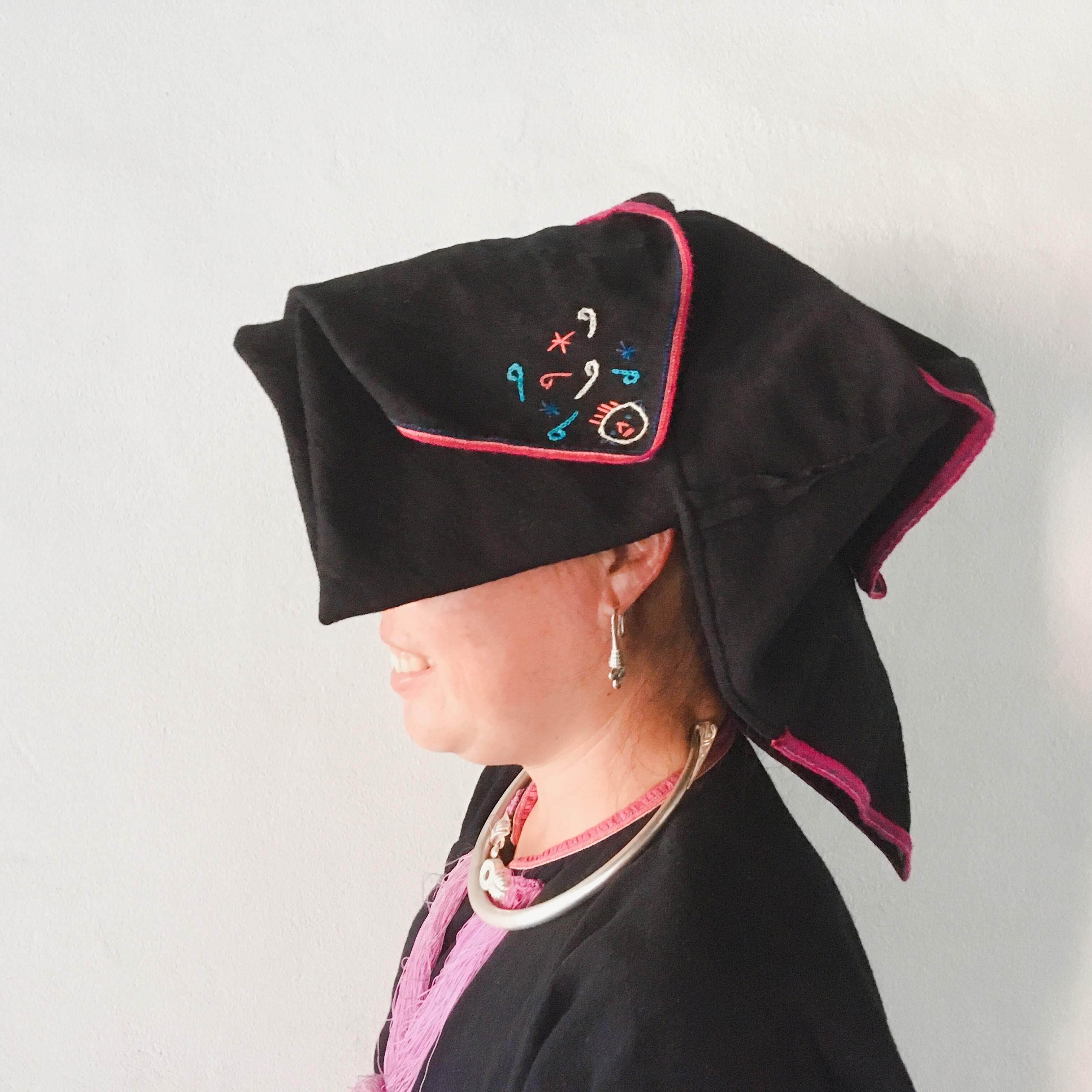 ラオス北部に暮らすレンテン族の伝統衣装として使用される頭巾(マニャーイドン)