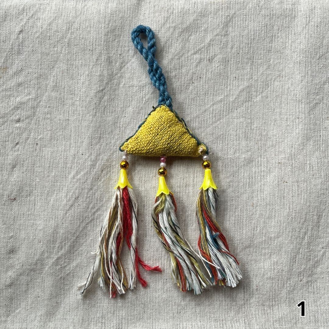 サイズ 三角形部分幅約5cm、高さ約3cm、フリンジの長さ約6cm〜10cm