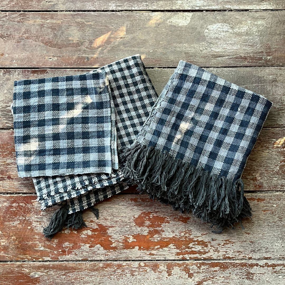 ロングストール 千鳥格子変形チェック ラオスの手織りコットン布 khanpa check 52024 ( 約45cm×250cm)