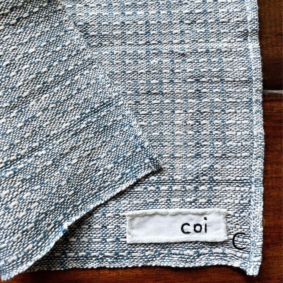 Samkhaoと呼ばれる変形平織りコットン生地でハンカチサイズに仕立てました。